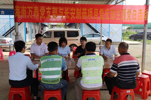 為提升公司基層黨建工作水平,激勵引導黨員立足崗位做表率,不斷推進自貿(mào)港建設作出新的貢獻,海南萬泰公司黨支部于2020年9月9日上午組織黨員深入在建項目長安制藥美安科技新城新廠建設工地,與長安制藥項目黨支部聯(lián)合開展了一次接地氣、入人心的專題黨日學習活動,主要是以學習海南自貿(mào)港建設總體方案為重點,大家結合各自實際交流和分享了學習心得體會,一致感到自貿(mào)港建設給企業(yè)發(fā)展帶來了紅利,為老百姓帶來了實惠,作為企業(yè)的一名共產(chǎn)黨員應該即當好自貿(mào)港的建設者,又要通過模范帶頭作用,當好自貿(mào)港建設的推動者。萬泰公司黨支部副書記孟晨、長安制藥項目黨支部書記張蕾及項目黨員、入黨積極分子參加了活動。